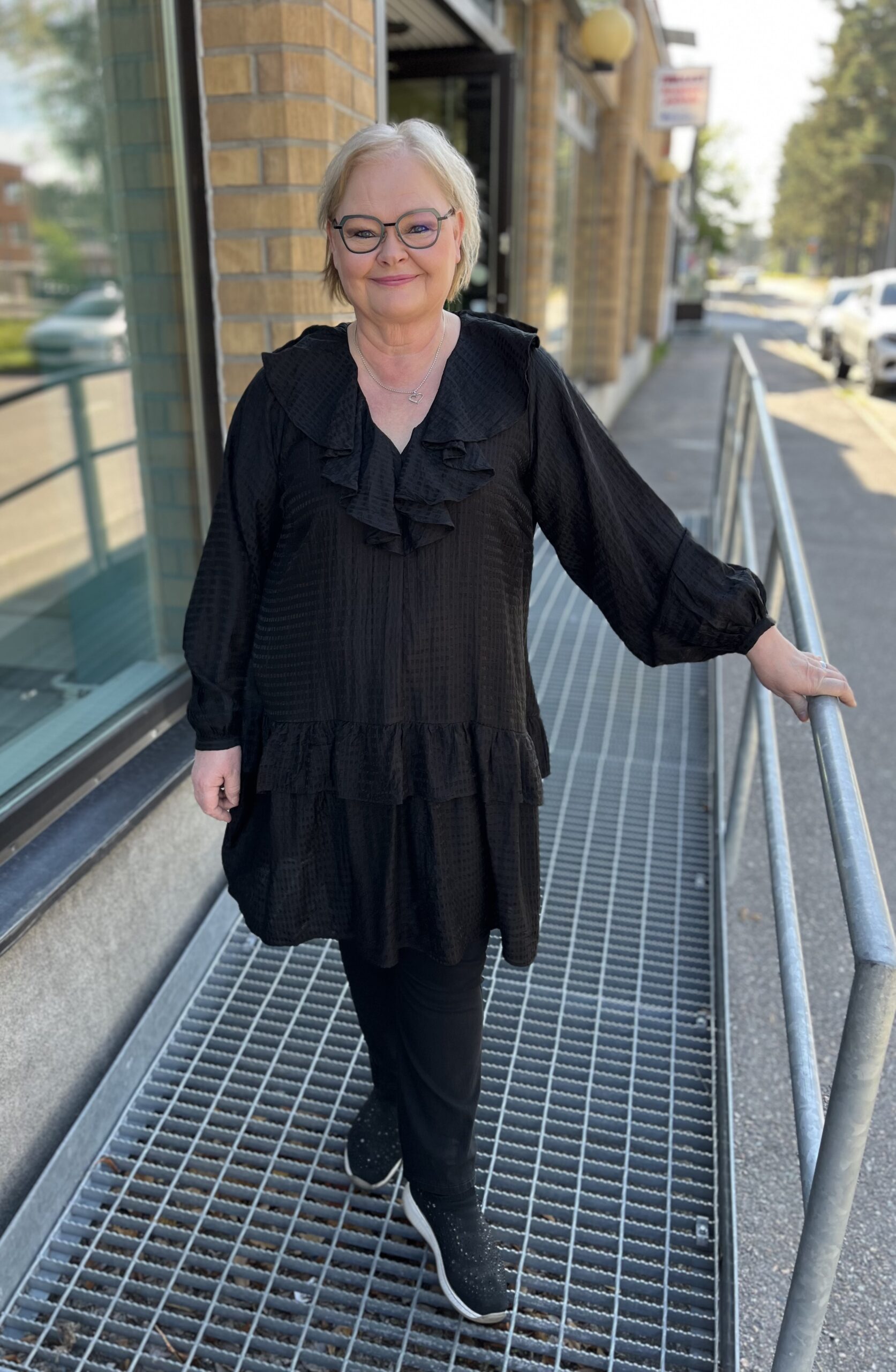 - Tämä menee hyvin myös esimerkiksi koutattujen housujen kanssa tunikana