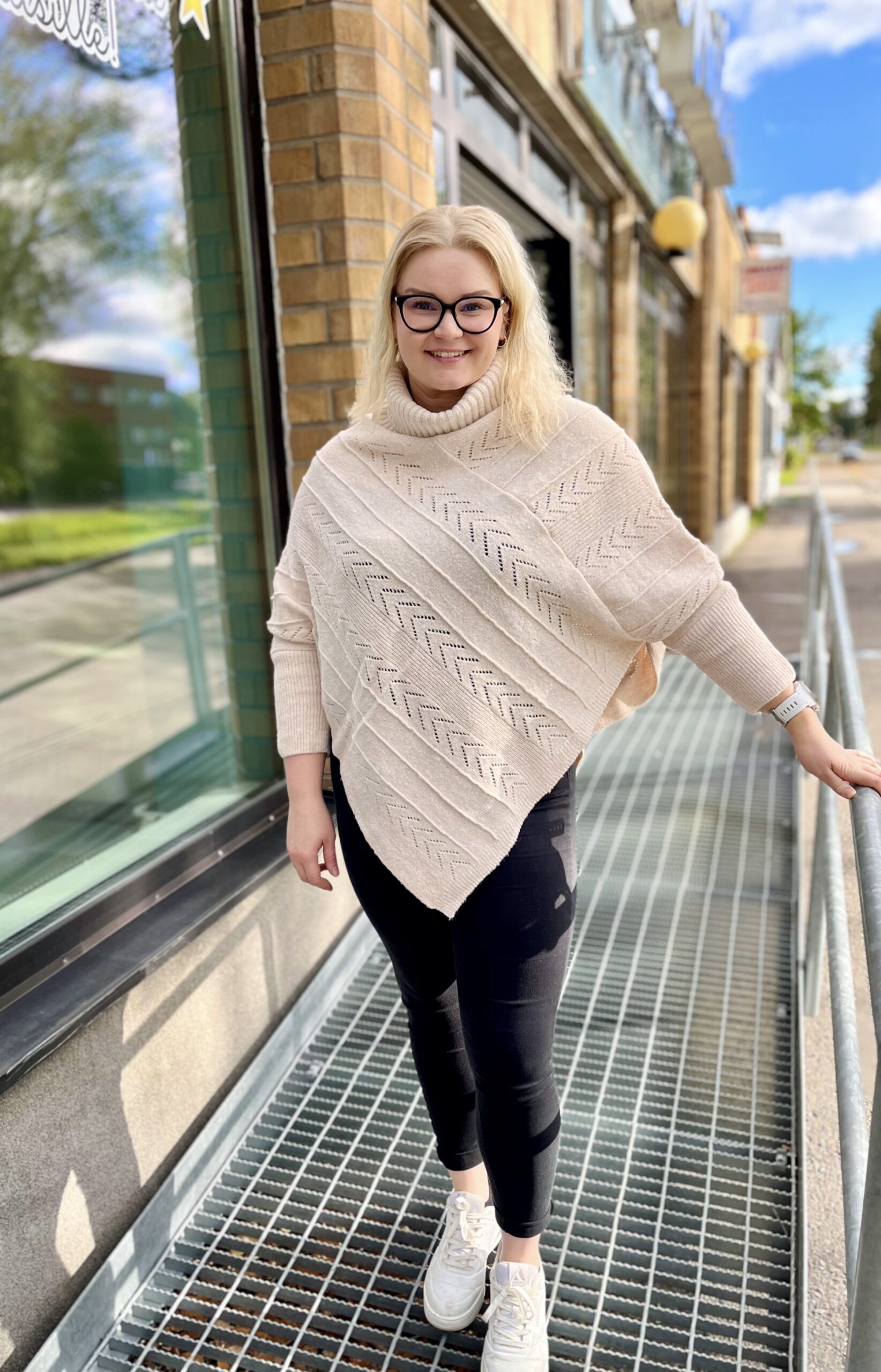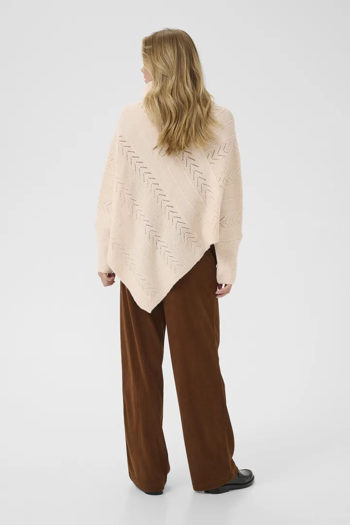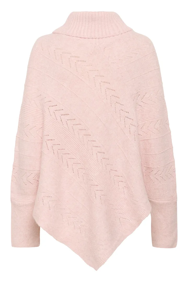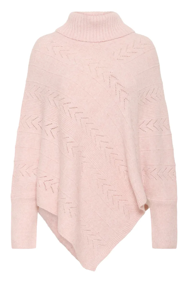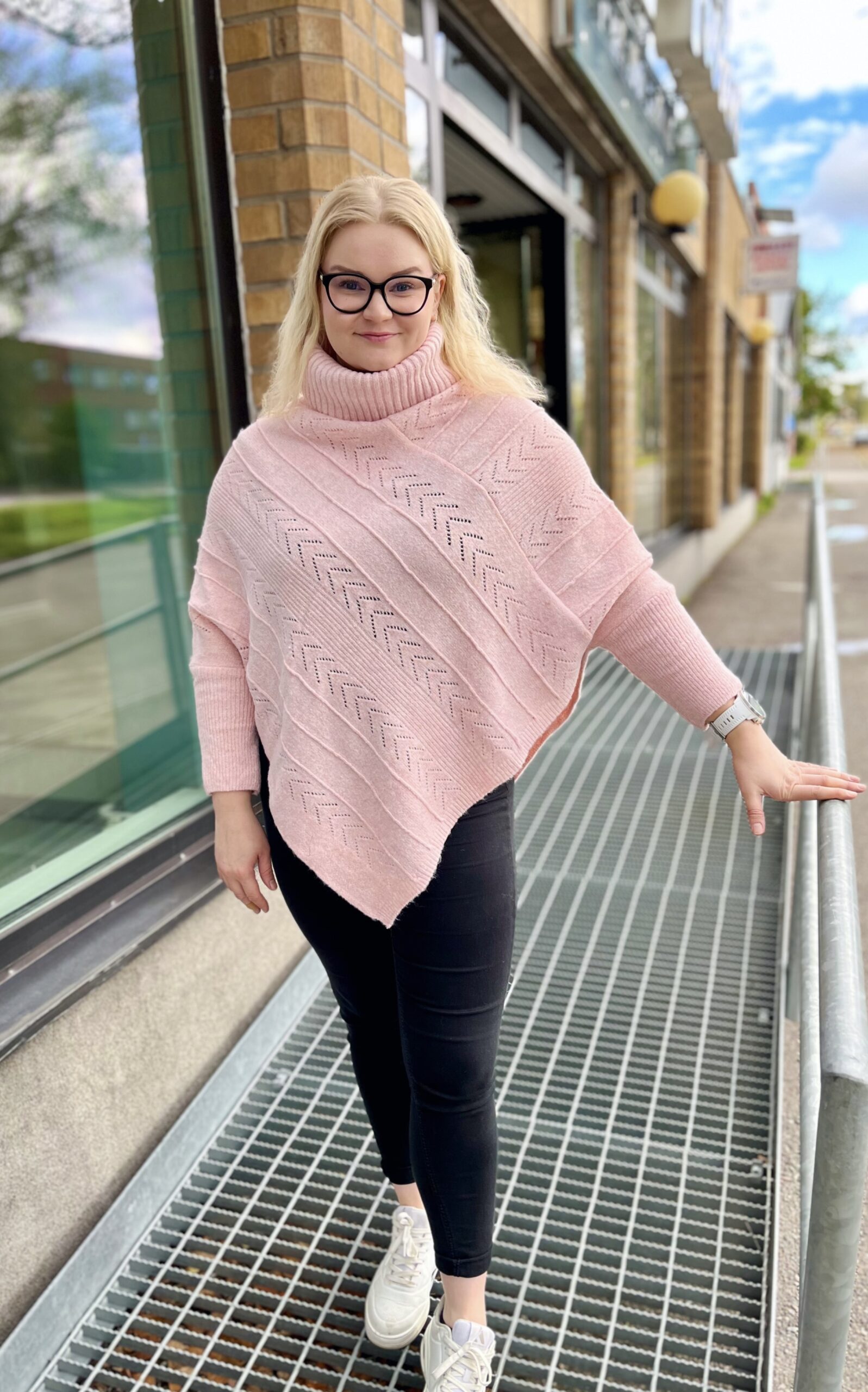 Ponchossa korkea mutta väljä poolokaulus, kaulus ei tule suoraan kaulaa vasten