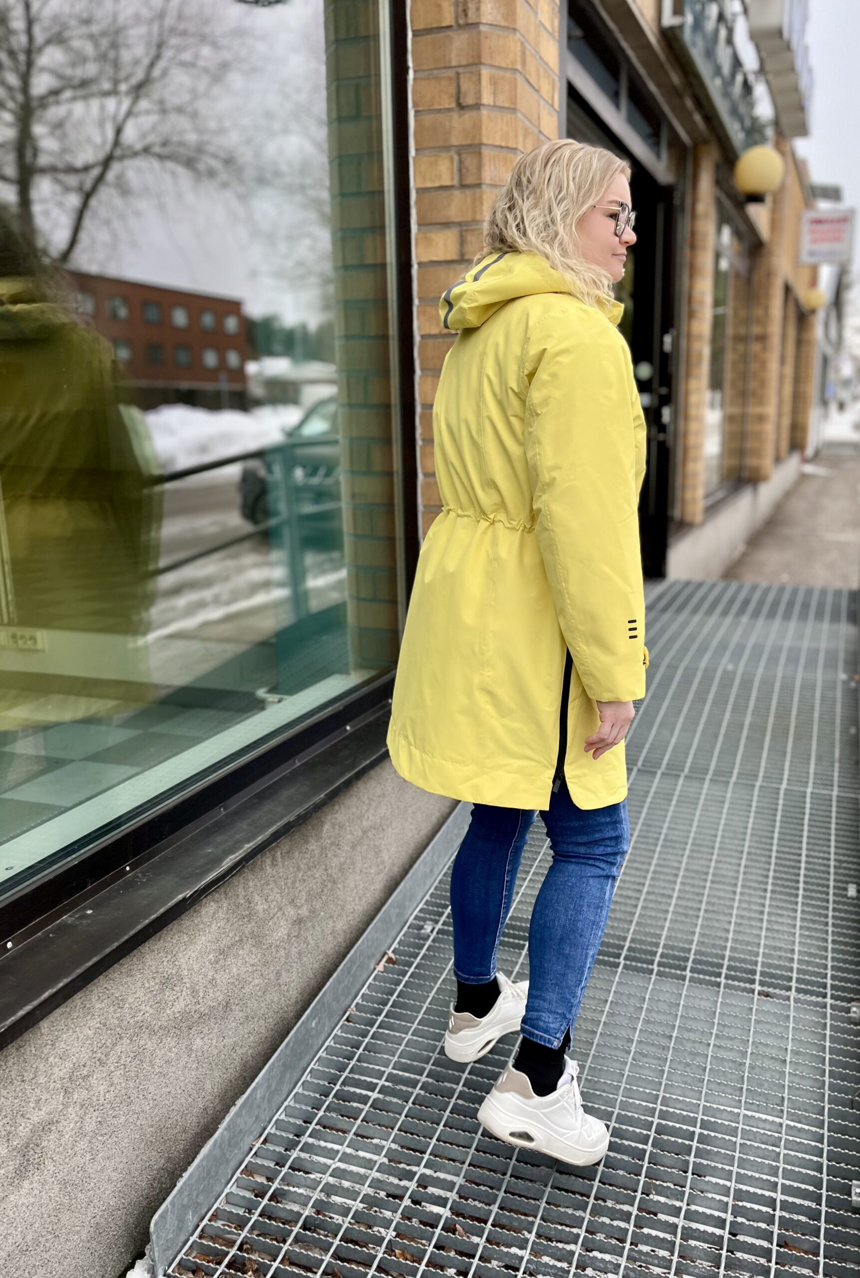 - Vyötärön kohdalla selkäpuolella kiristysmahdollisuus, joka antaa takkiin muotoa