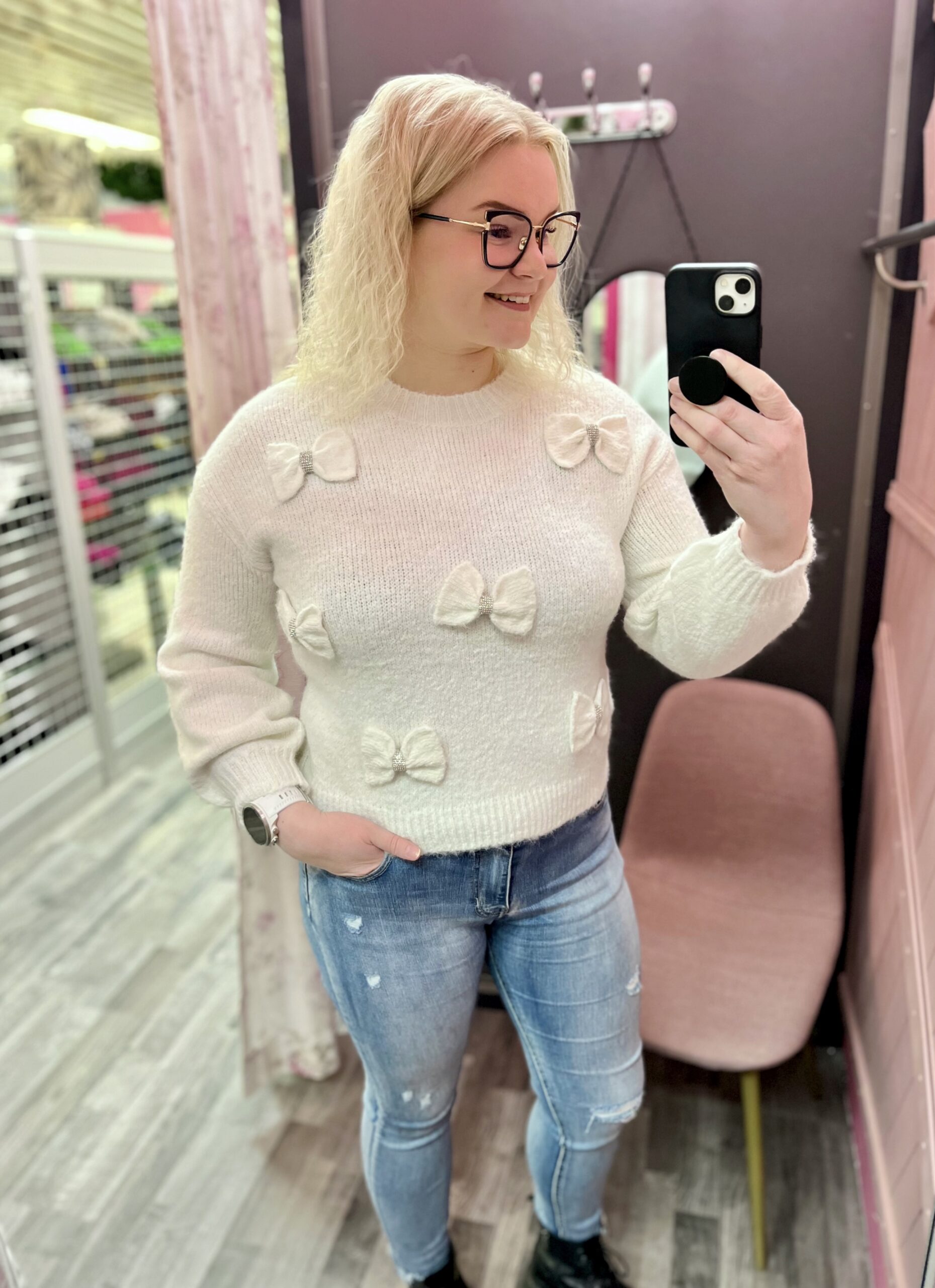 - Todella kaunis ja naisellinen yhdenkoon neulepusero ihanilla koristeruseteilla