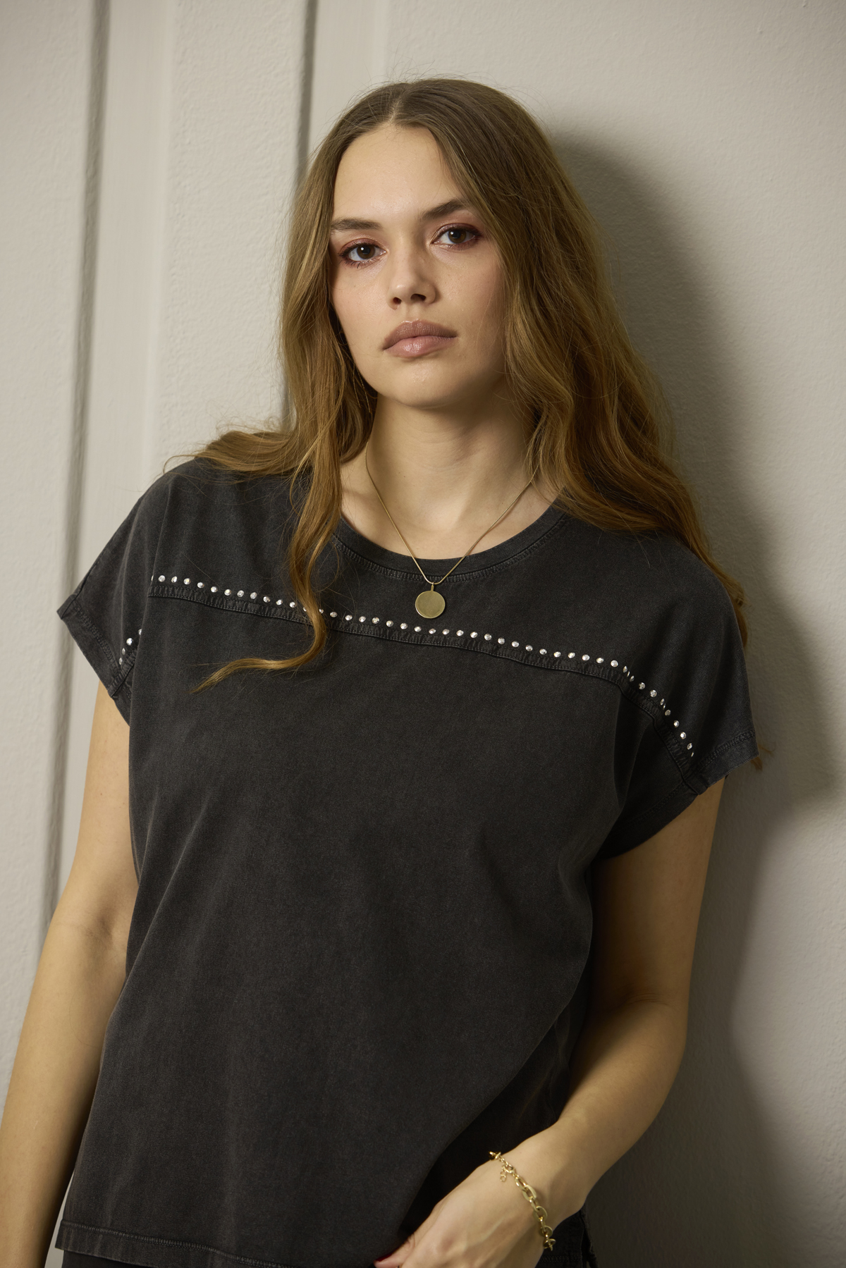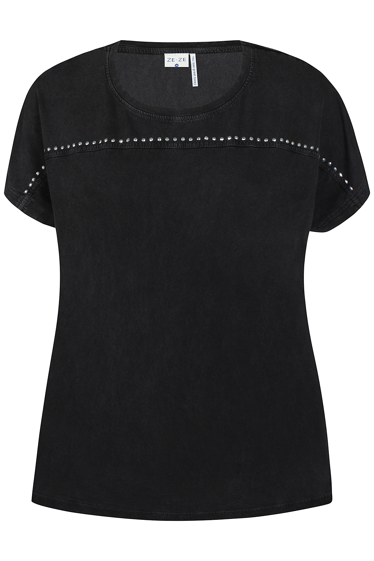 - Kiva holkkihihainen paita, jossa edessä on koristeena pienet strassit