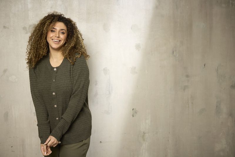 - Siisti ja joustava neulejakku vihreässä ja mustassa värissä