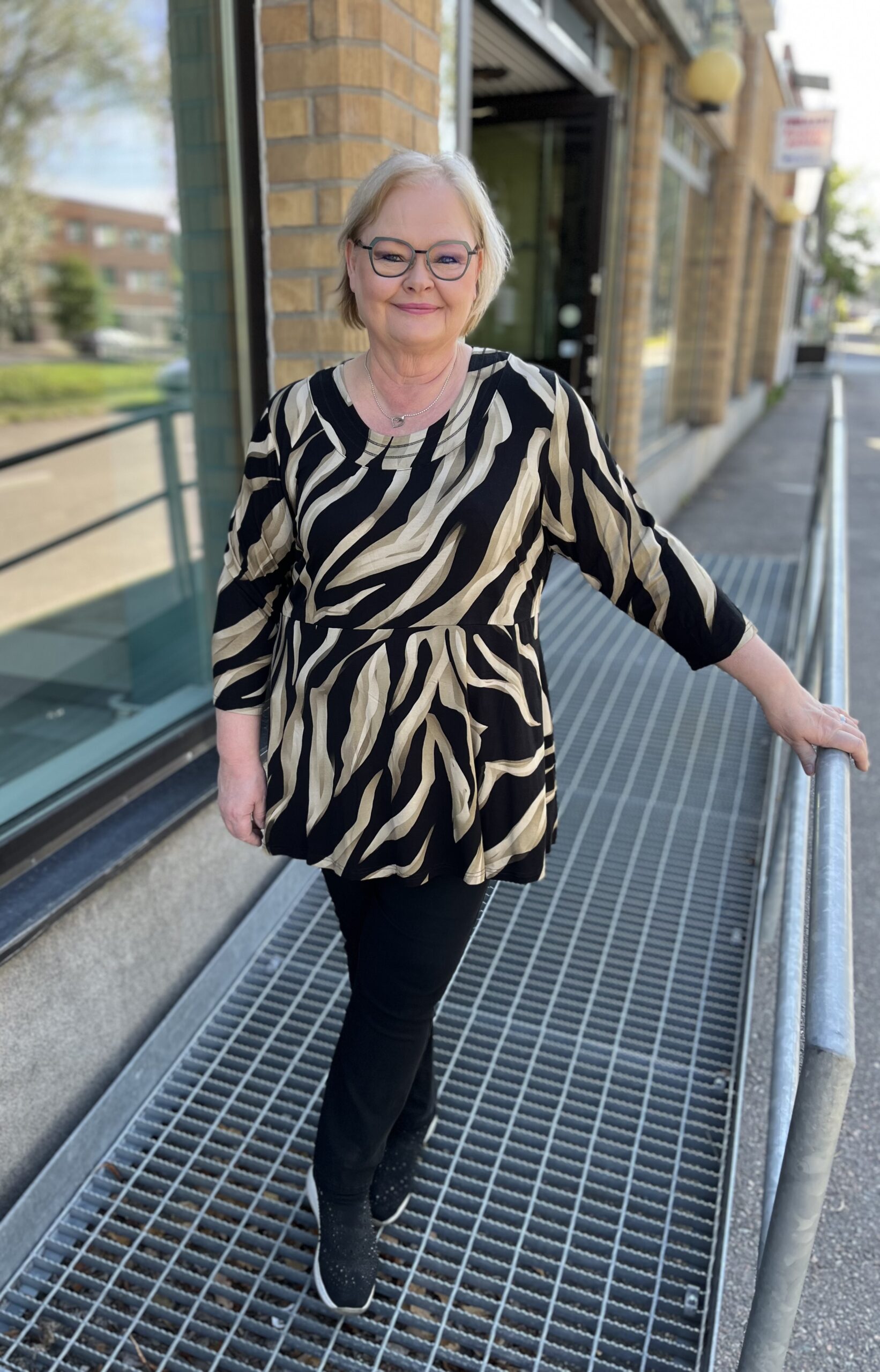 - Tyylikäs trikootunika khakinvihreän ja mustan sävyssä